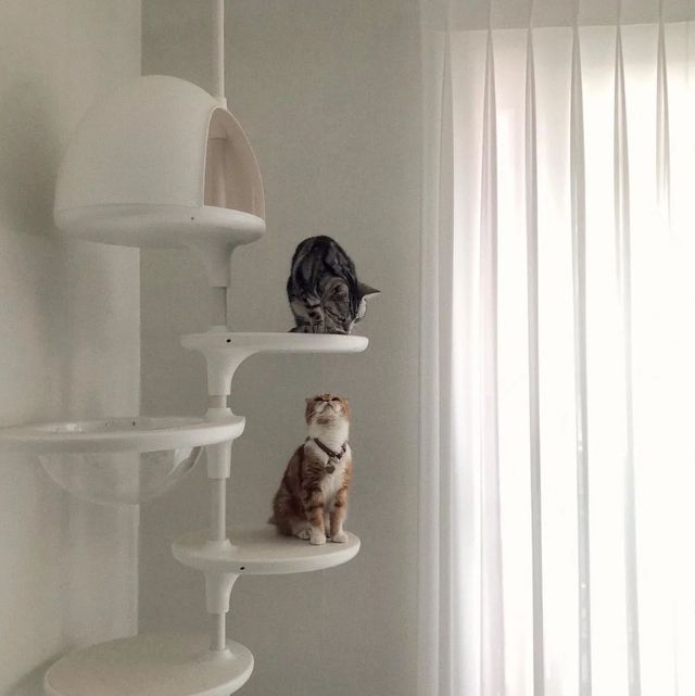 我們都沒有超大的空間,所以垂直空間的利用就變的很重要。尤其貓科動物都喜歡攀爬,所以像這樣頂天立地的貓跳台就太完美啦!!!