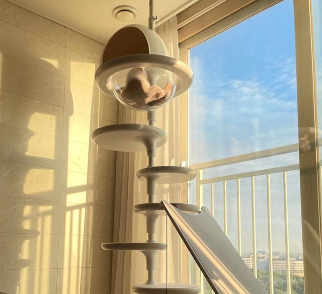 我們都沒有超大的空間,所以垂直空間的利用就變的很重要。尤其貓科動物都喜歡攀爬,所以像這樣頂天立地的貓跳台就太完美啦!!!