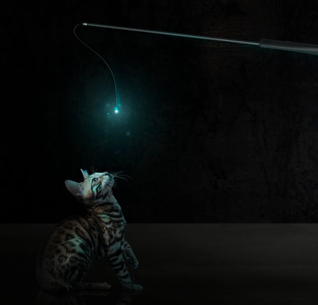 跟貓孩子玩樂時,用光纖逗貓棒在空中劃出流星,想給你滿天星斗的美好日子,如同我們的相遇。