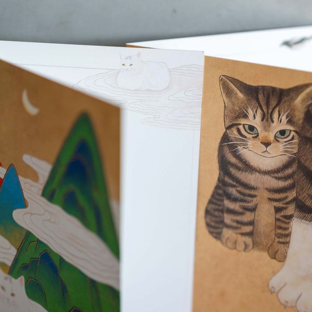 每一款都有大大的貓咪,融合了韓國民畫風格與現代元素,也加入了朝鮮王朝時期有點復古的風格,既傳統又現代的碰撞相當可愛。